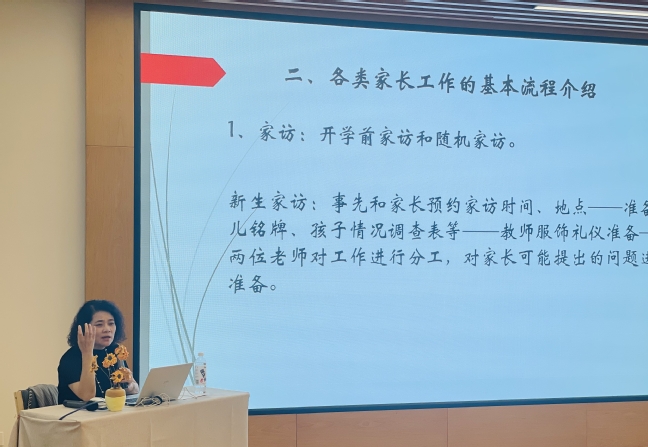 1012日、19日下午,学前教育系在杨浦校区模拟幼儿园实训室举办第二课堂系列讲座,主题为“家长工作那些事”。学前教育系主任方慧、副系主任傅晨、专业主任金晔、全体20级学前教育系学生通过线下和线上结合方式参加了此次讲座。